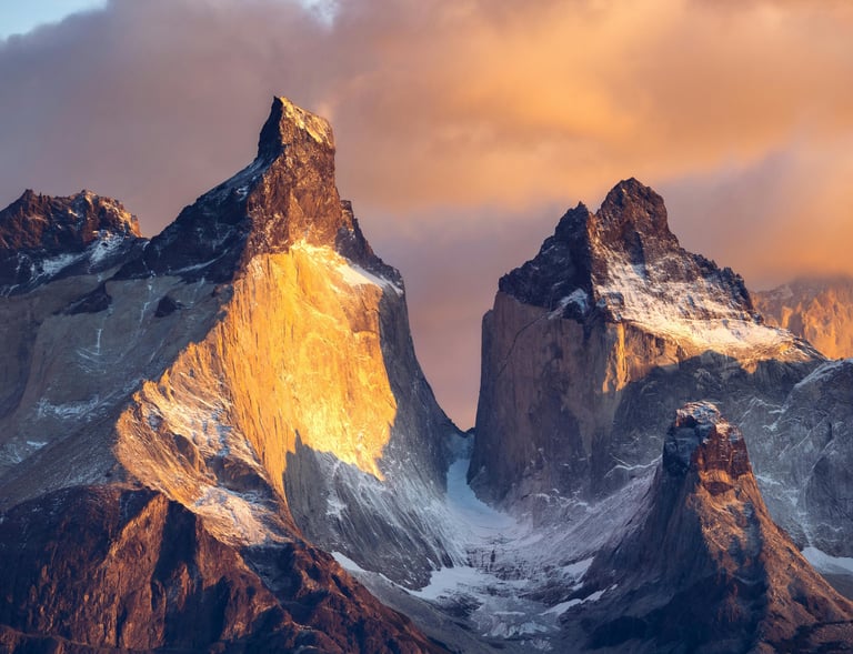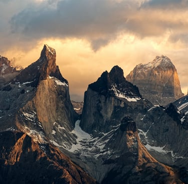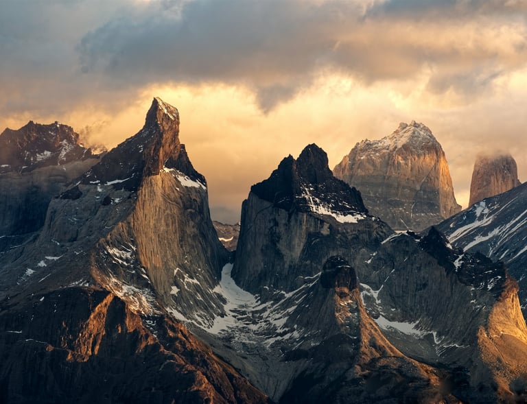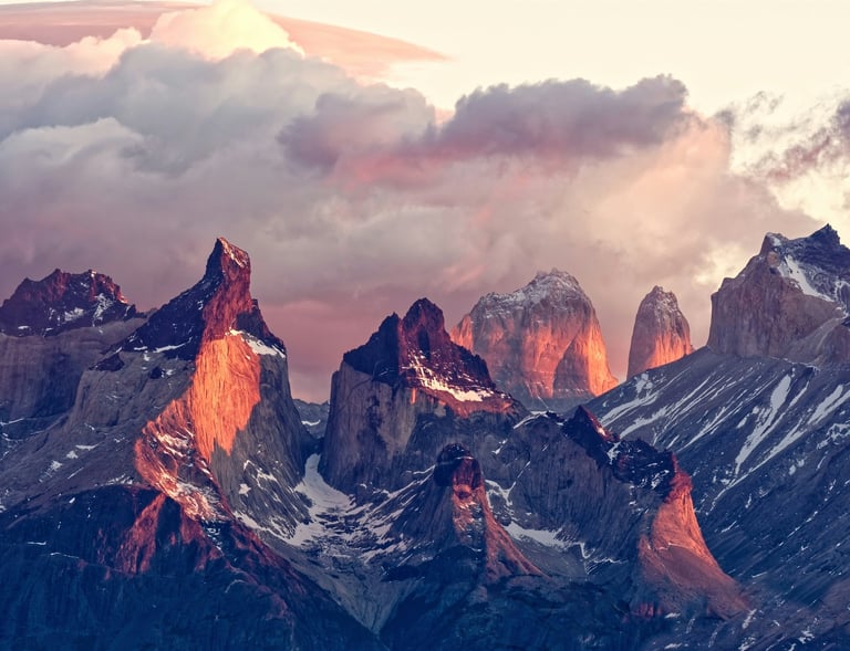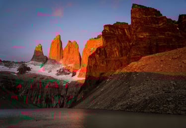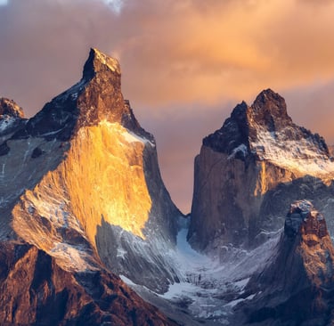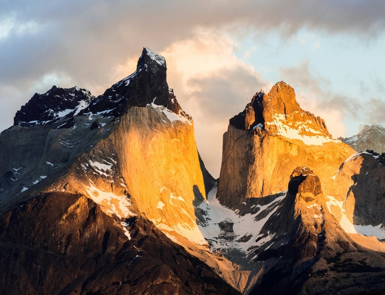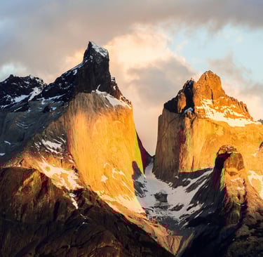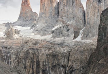 The natural wonders of Torres del Paine are not only visually captivating but also reveal fascinating geological processes such as glacial erosion, magma uplift that formed its iconic granite towers, and the folding and collision of Earth's crust that created its rugged mountains. Evidence of the past can be seen in every exposed rock layer, in the U-shaped valleys left behind by ancient glaciers, and in the moraines that trace the movement of ice over time.